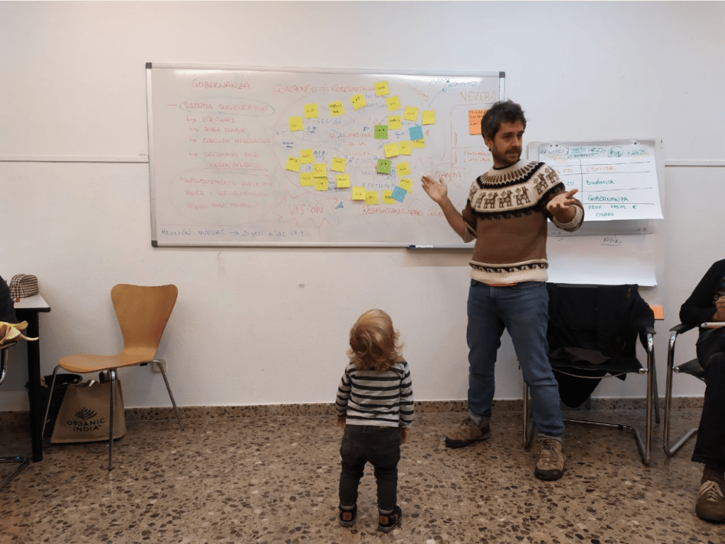 Transitar del que és individual al que és col·lectiu, amb espais per a la intimitat i per al compartir. Construir comunitat secundats per eines per al creixement personal i del grup, com ara la facilitació de grups, la gestió de conflictes, la sociocràcia, la comunicació no violenta…